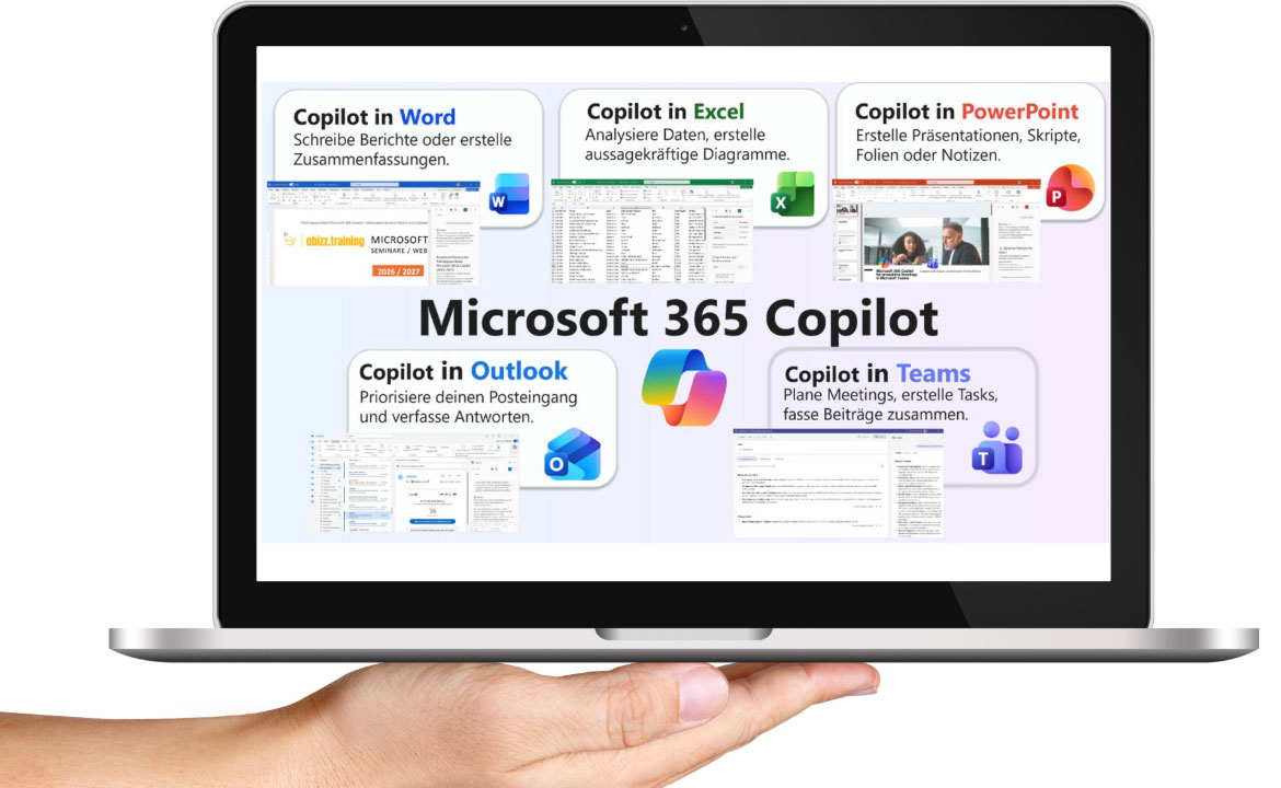- KI direkt in Word, Excel, PowerPoint, Outlook & Teams – Produktivität & Automatisierung im Alltag.